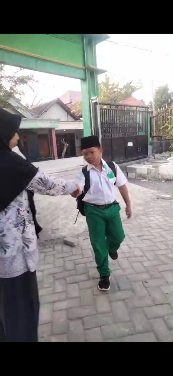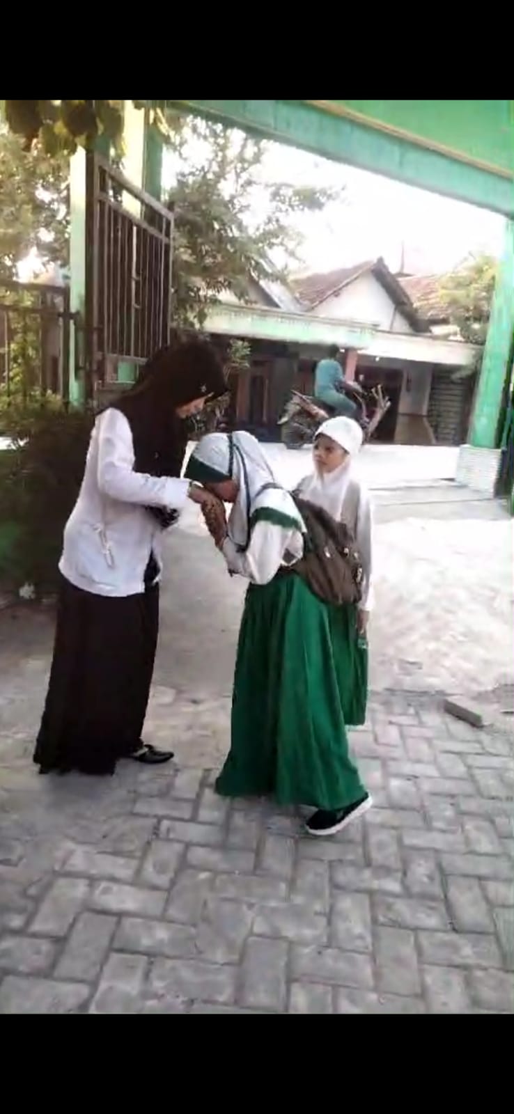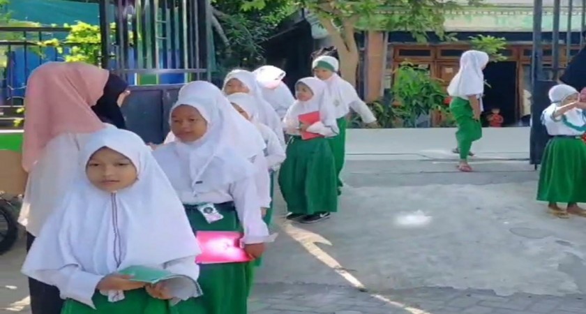 Setiap pagi ada 3 guru yang bertugas piket untuk menyambut kedatangan anak didik secara bergantian sesuai jadwal yang sudah ditentukan,guru yang bertugas sudah berada di pintu gerbang sejak pukul 06.30 WIB. Disamping menyambut anak didik dengan senyum, sapa, dan bersalaman di pintu gerbang,bersamaan dengan kegiatan tersebut digunakan guru untuk membangun kedekatan bathin dengan memotivasi para anak didik agar selalu menjaga kebersihan diri seperti memeriksa kuku,rambut,kerapian dan keseragaman pakaian, sembari menanyakan kabar anak didik tentang Sholat nya, Mengaji, menggosok gigi dan banyak lagi pertanyaan ke anak didik sejak pagi hari mulai berada dimadrasah.