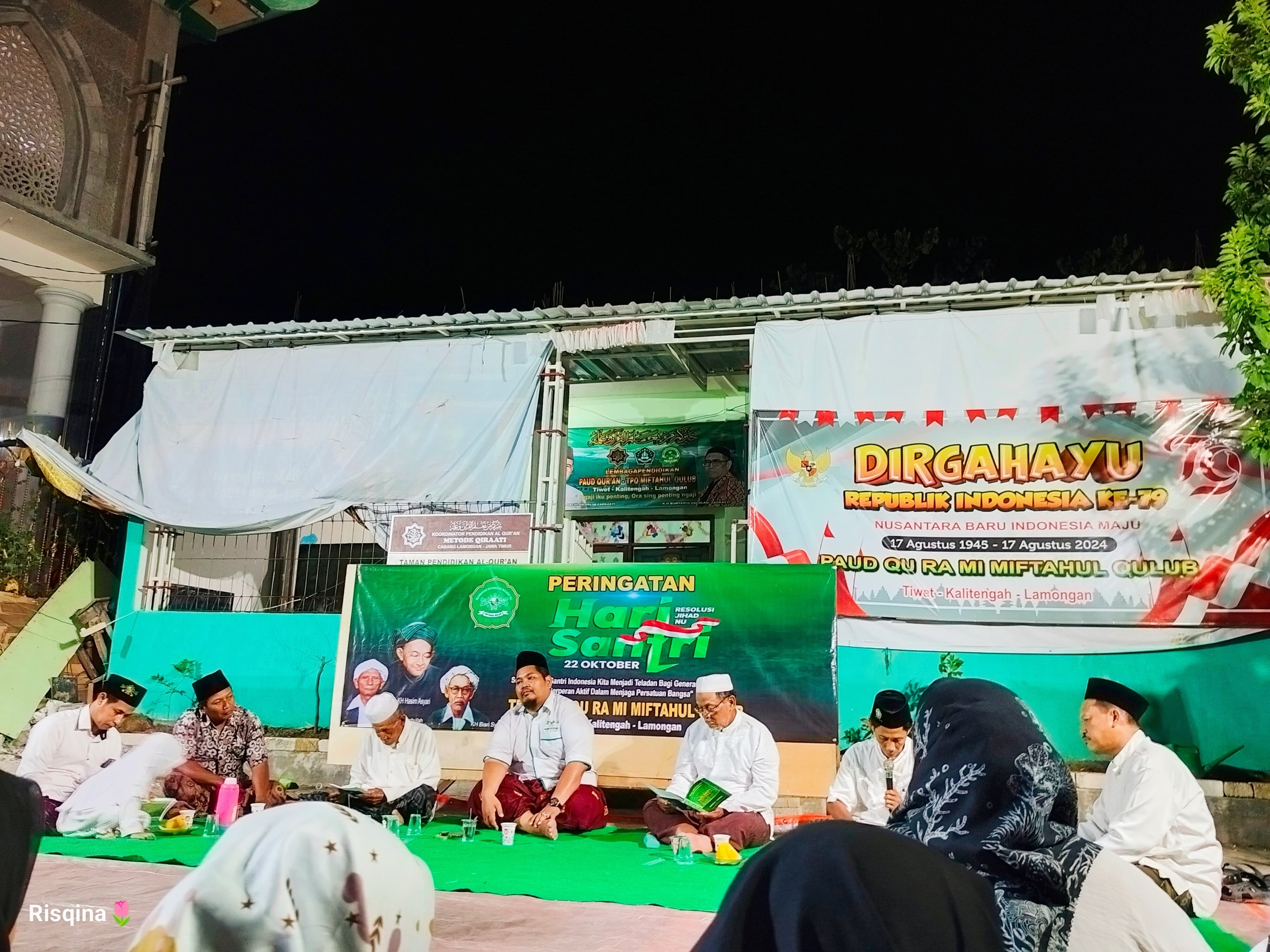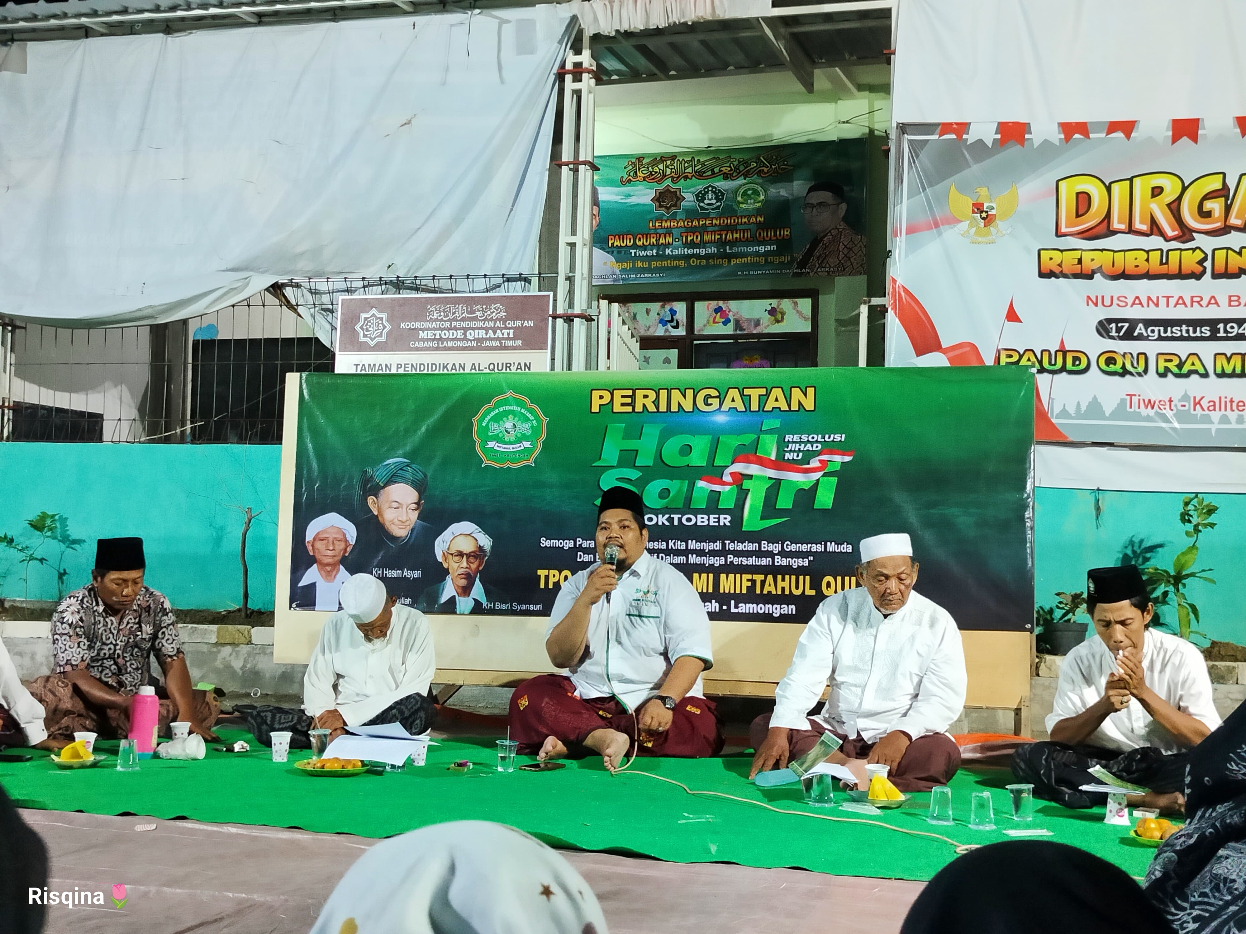 Acara dibuka dengan sambutan hangat oleh Ibu Fatimah sebagai pembawa acara. Selanjutnya, pembacaan Mahallul Qiyam yang dibawakan oleh Ibu Rizqina Kausarani dan Mbal Lutfi menambah suasana khidmat. Pembacaan ini merupakan ungkapan rasa syukur dan penghormatan terhadap perjuangan para santri.